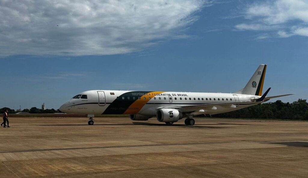 A aeronave VC2 (Embraer 190) da Presidência da República pousou em Brasília, às 8h35 desta quinta-feira – Foto: FAB/GOV