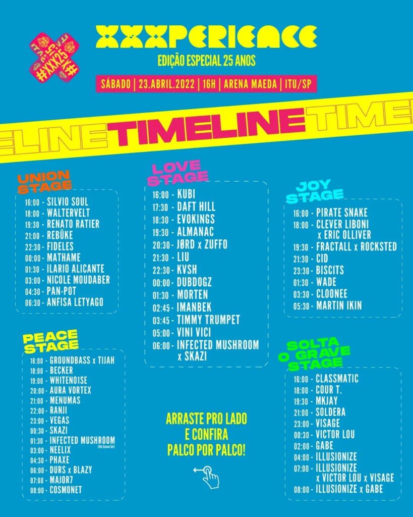 O chão vai tremer neste sábado em Itu, na Arena Maeda! Após dois anos de silêncio por conta da pandemia da Covid-19, o XXXPERIENCE Festival retorna este ano. Serão 17h de festa neste sábado, 23 de abril. O evento celebra seus 25 anos de história. São mais de 50 atrações em 5 palcos diferentes que contemplam várias vertentes da música eletrônica.